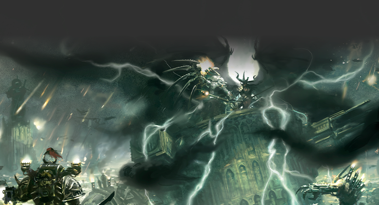 Effect: Select No Man’s Land or your opponent’s deployment zone, or spend one Flux token and select both. Until the end of the phase, the selected areas of the battlefield are within your army’s Shadow of Chaos.