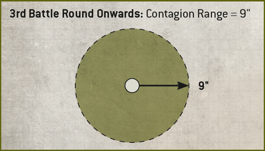 Effect: Until the start of your next Command phase, add 3" to the Contagion Range of models from your army.